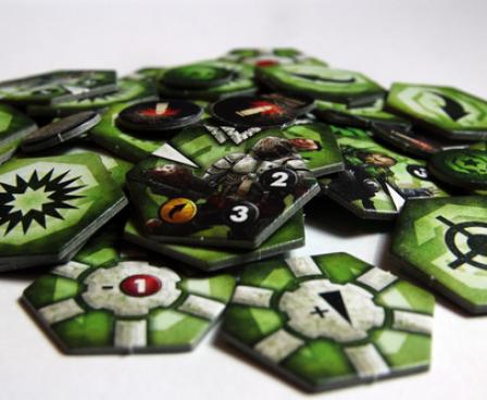 Neuroshima Hex! is a strategy game set in the post-apocalyptic world of Neuroshima, a Polish role-playing game. Each player leads one of four armies: Borgo, Hegemonia (Hegemony), Moloch, and Posterunek (Outpost). Each army deck consists of 34 tiles: soldiers, support tiles, and special actions. You win when all enemy headquarters are destroyed or when your headquarters is the least damaged at the end of the game.