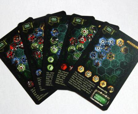 Neuroshima Hex! 3.0, released in 2013 from Z-Man Games, includes rule corrections, the Doomsday Machine army (for five armies in the NH base game), a solo variant with 55 puzzle cards that present you with challenging situations, and new three-player variants: Deathmatch; Deathmatch with scores; one player vs. a team; and a team match (with one player playing two armies).
