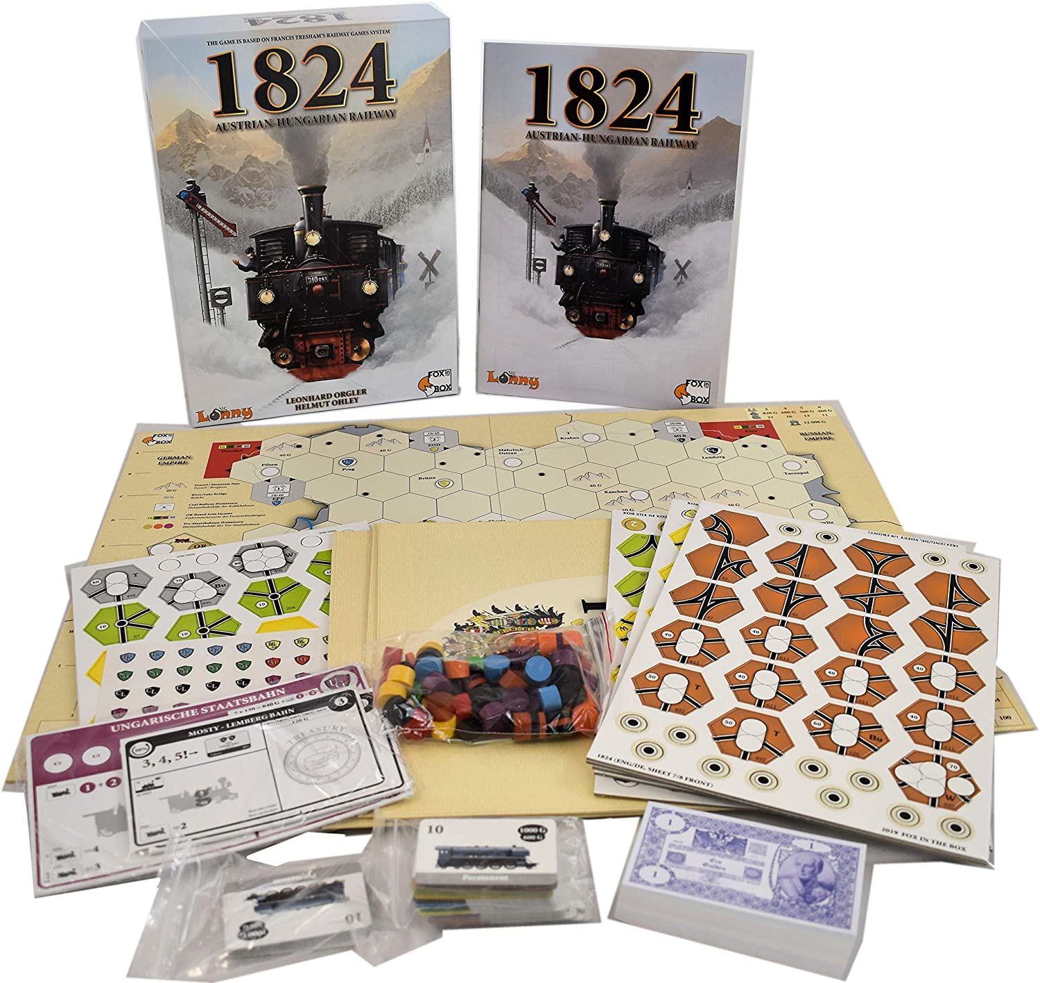 1824 Austrian-Hungarian Railway is an 18xx railway building and share dealing game for 3-6 players. It is based on Francis Tresham's game 1829 and on Leonhard Orgler's game 1837.