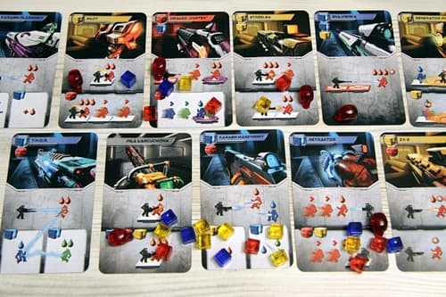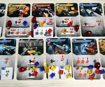 Play a first-person shooter on your gaming table. Grab some ammo, grab a gun, and start shooting. Build up an arsenal for a killer turn. Combat resolution is quick and diceless. And if you get shot, you get faster!