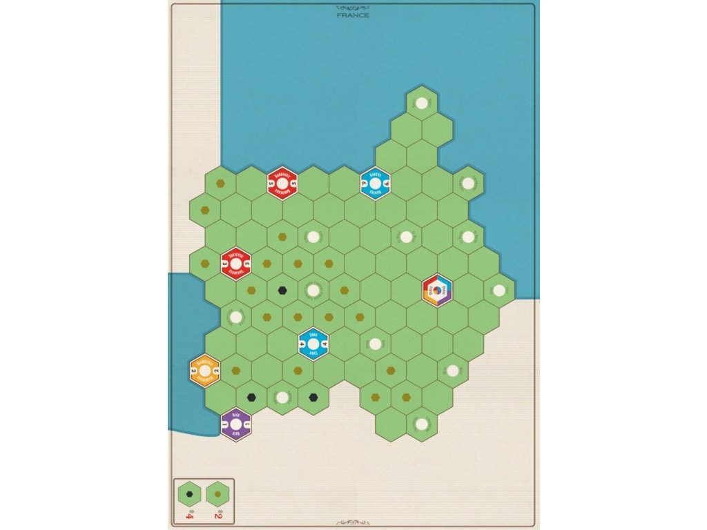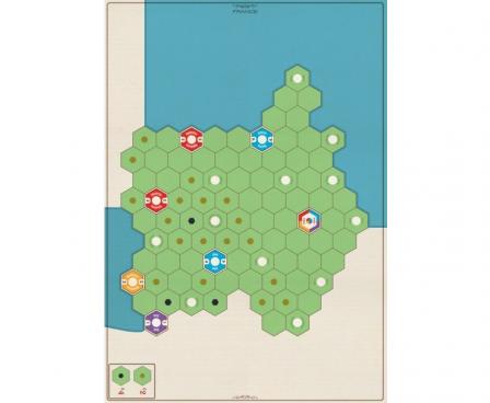 a 2 sided game board with maps of France and Poland in the new Age of Steam: Deluxe graphic style