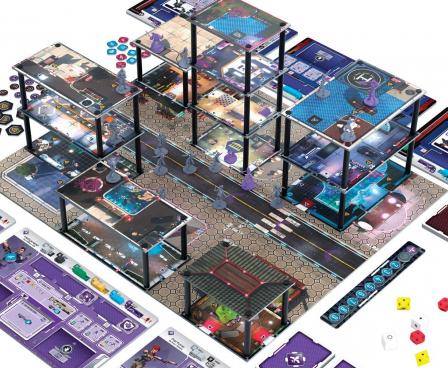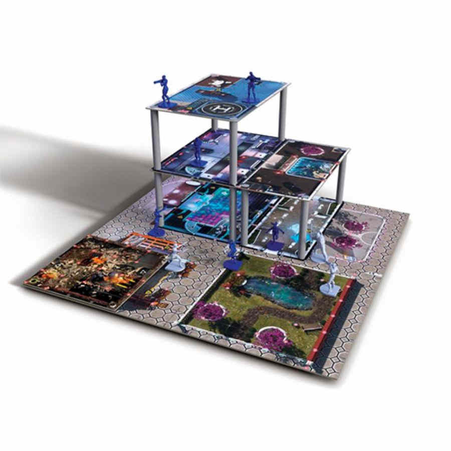The game is played out on a map featuring multistory, modular buildings that can be destroyed and altered as the battle rages on. Miniatures combat itself is asymmetric, as the LEGION player runs an entire army of diverse and fearsome robots, dark matter powers, giant golems, and doomsday devices, while the MAYHEM player gets to build a team of three elite specialized agents, and give them unique upgrades to build on their individual strengths and shared synergies.