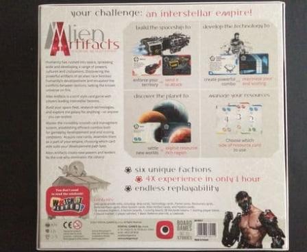 Alien Artifacts provides a true 4X experience in under an hour. With over two hundred cards, Alien Artifacts offers players many scoring strategies and great replay-ability.