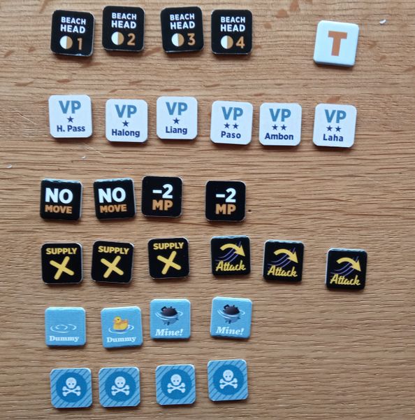 One player controls Japanese forces and the other one Allied (Dutch and Australian) forces. Victory is achieved by means of control of certain hexes and elimination of enemy units. The aim of the Japanese player is to conquer as soon as possible the three main key locations in Ambon (the city of Ambon, Paso, and the Laha airfield) as well as some secondary key locations. The sooner the Japanese conquers these locations, the more victory points he will receive. So, for the Japanese it's a race against the clock, while the Allied player must slow down the Japanese advance without suffering too many losses.