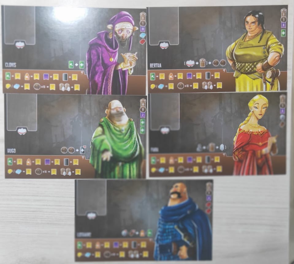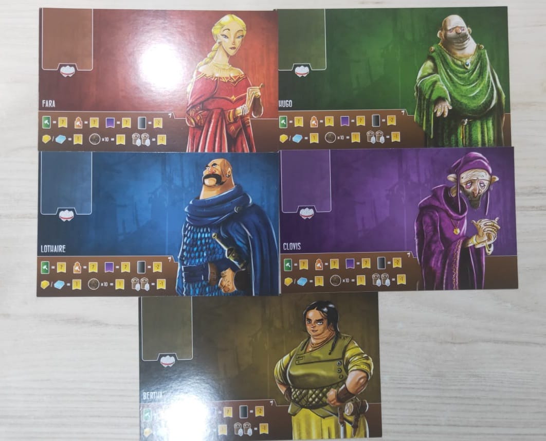 5 Player Boards (Lothaire, Clovis, Bertha, Fara, Hugo)