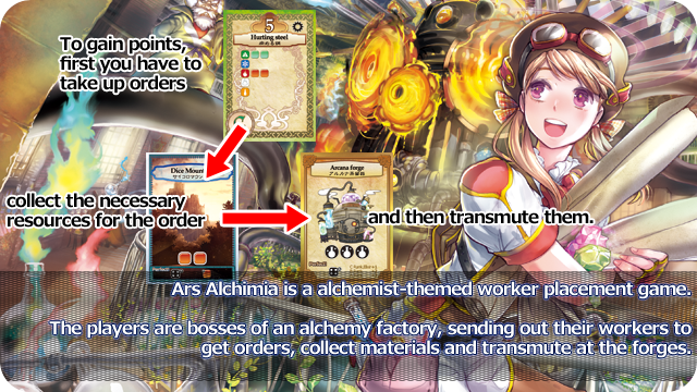 In Ars Alchimia, you work at one of these factories. As an overseer belonging to the Academy, you take orders from the people, gather resources, and transmute them — but you need to be more efficient than your competition.