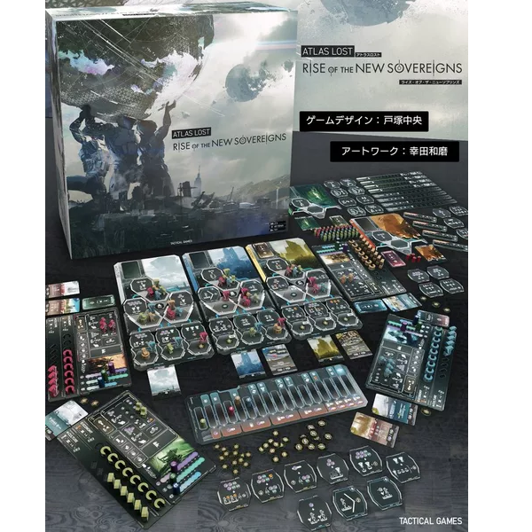 Atlas Lost: Rise of the New Sovereigns is a tech-tree, resource management, and civilization game that can be played by 2-4 players. In the game set-up, you play a combination of three of the five available techs. Each of these techs employs different board game mechanisms. You must use cards, collect resources, and employ unearthed tech to build up your own troops and gather fame faster than the players around you. Whoever first scores 30 points wins.