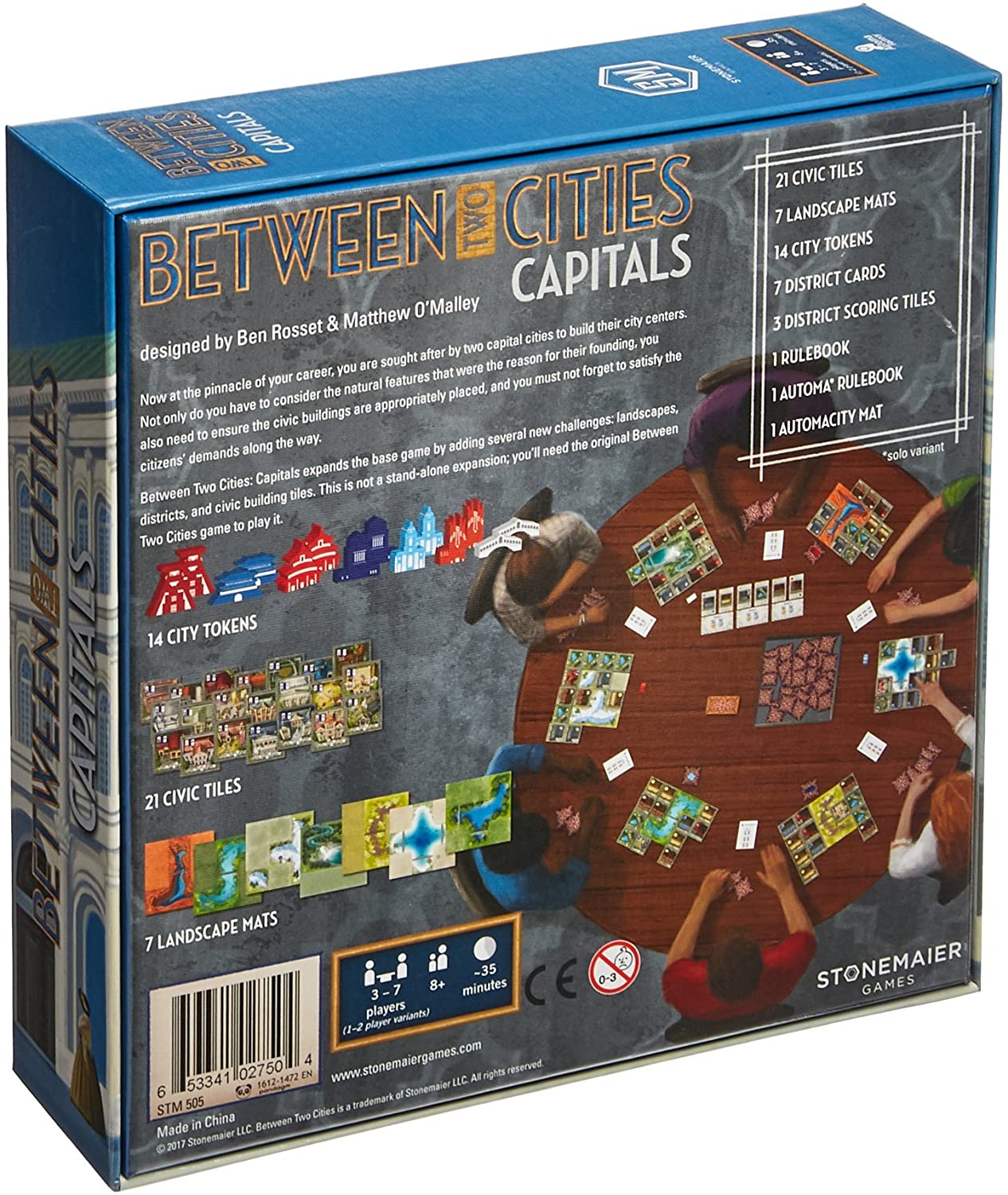 Between Two Cities: Capitals expands the base game by adding several new challenges: landscapes, districts, and civic building tiles. This is not a standalone expansion; you need the original Between Two Cities game to play. In more detail:
