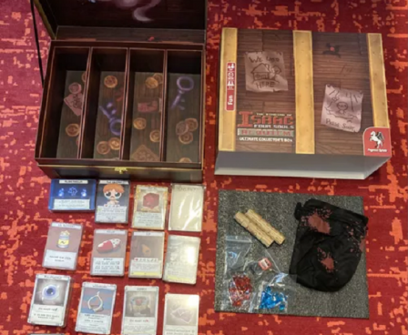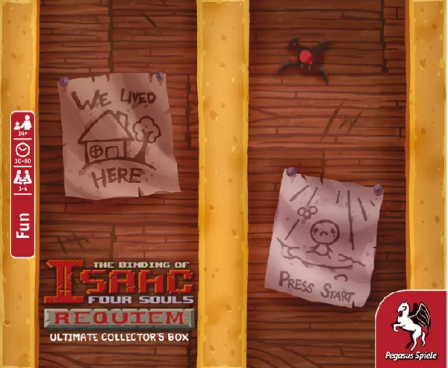 The Binding of Isaac: Four Souls – Ultimate Collector's Edition contains the base game, the Requiem and Four Souls+ expansions, and an extra-large box for all cards.