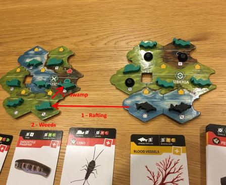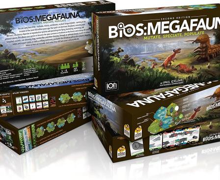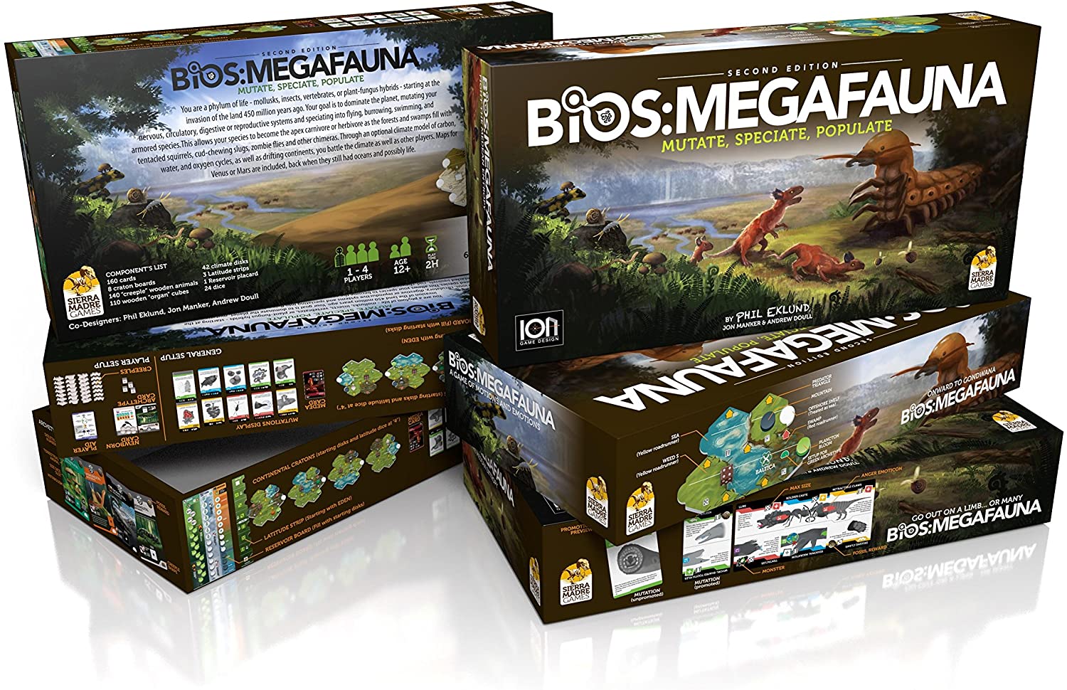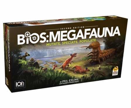 This second edition of Bios: Megafauna is an evolutionary descendant of American Megafauna but as a part of the Bios series of games it is linked to the game Bios: Genesis. It plays well independently but if you have both games you can let the end state of a game of Bios: Genesis affect the starting state of a game of Bios: Megafauna. A successor game, called Bios: Origins (which would be a descendant of Origin), is planned to cover the events of the Quaternary period including the rise of ideas and technology.