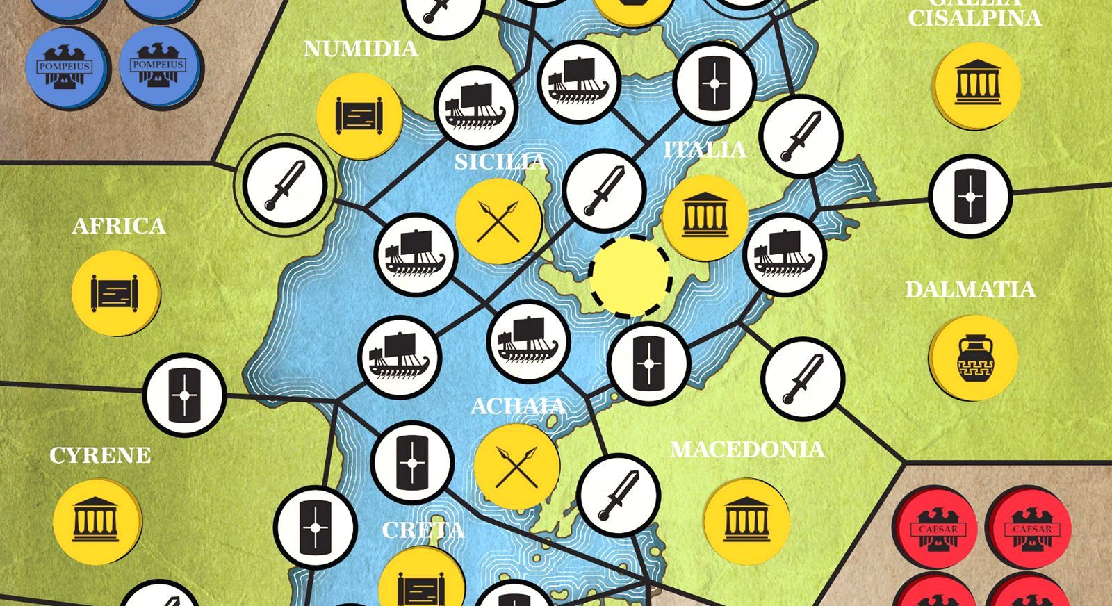 The Roman Republic is coming to an end, but not before a power struggle between Caesar and Pompey. Players will command their legions, strategically deploying them to key battlegrounds to try and seize control of the provinces and become ruler of the republic.
