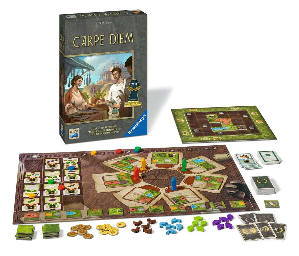 The players slip into the role of rich patricians in ancient Rome. Everyone is trying to build a lucrative city district to score as many prestige points as possible. The novel way to get to the individual buildings of a district combined with a large variety of score cards make for an unusual game with a large number of strategies. From the successful designer, Stefan Feld.
