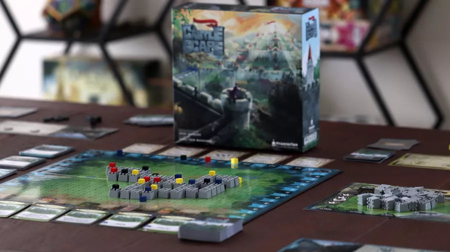 CastleScape is highly strategic and incentivizes players to play differently each game. Besides each player’s hidden objective cards and a Castle that is procedurally built each game, players will plan multiple turns ahead to build the castle how they see fit. The Market also has both static and rotating card options to keep gameplay fresh and interesting. Points can be earned by building and claiming credit for Baileys, purchasing cards, and completing hidden or public goals; but points will be lost based on Corruption.