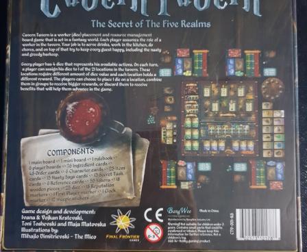 Cavern Tavern is a worker (dice) placement and resource management game that is set in a fantasy world. Each player assumes the role of a worker in the tavern. Your job is to serve drinks, work in the kitchen, do chores, and on top of that try to keep every guest happy, including the nasty and greedy barkeep.