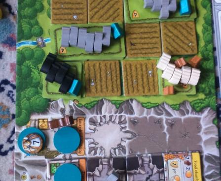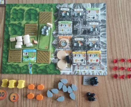It's up to you how much ore you want to mine. You will need it to forge weapons that allow you to go on expeditions to gain bonus items and actions. While digging through the mountain, you may come across water sources and find ore and ruby mines that help you increase your wealth. Right in front of your cave, you can increase your wealth even further with agriculture: You can cut down the forest to sow fields and fence in pastures to hold your animals. You can also expand your family while running your ever-growing farm. In the end, the player with the most efficiently developed home board wins.