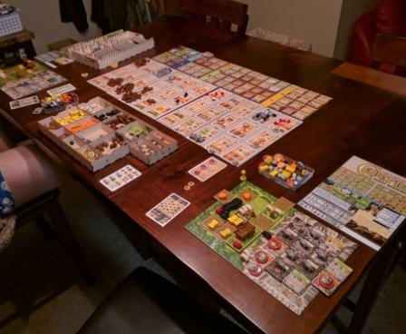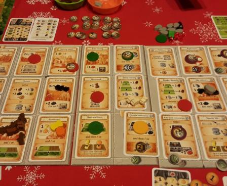 Caverna: The Cave Farmers, which has a playing time of roughly 30 minutes per player, is a complete redesign of Agricola that substitutes the card decks from the former game with a set of buildings while adding the ability to purchase weapons and send your farmers on quests to gain further resources. Designer Uwe Rosenberg says that the game includes parts of Agricola, but also has new ideas, especially the cave part of your game board, where you can build mines and search for rubies. The game also includes two new anim