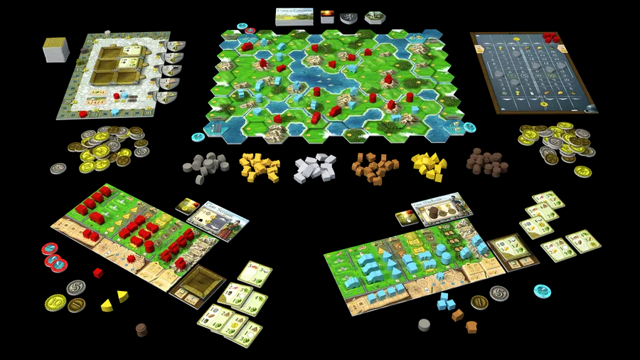 The game comes with eight different clans, a modular board with 16 configurations, eight port bonuses and eight round scoring tiles.
