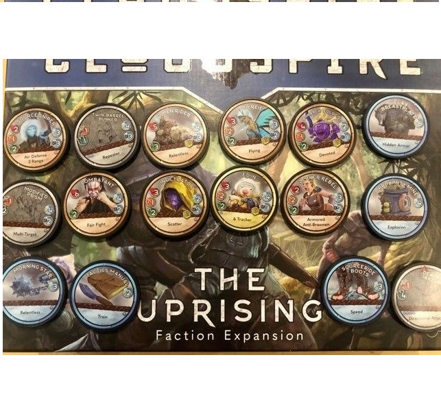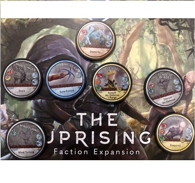 Doubling as a faction expansion and gameplay refresher, The Uprising is a faction that is made up primarily of mercenary chips drafted from the market. Each Uprising faction comes with multiple market heroes, minions, spires and equipment that can be utilized by The Uprising or shuffled into the market regardless of which factions are in play. Like the Horizon's Wrath, the Uprising comes with four solo scenarios and two co-op scenarios.