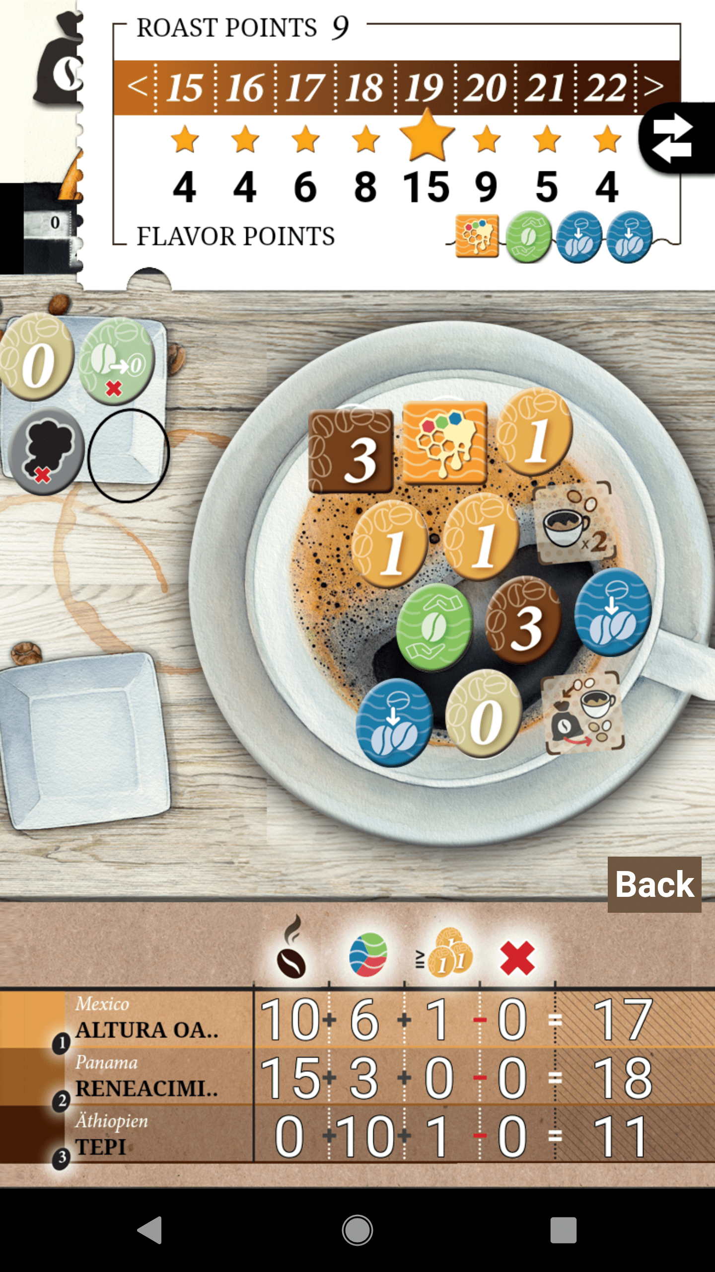 There are 22 varieties of beans in the game. In one game, you try to roast three of them, and your roaster title is awarded based on the total score. Enjoy the world of coffee-roasting, and aim for the ultimate title "Meister".