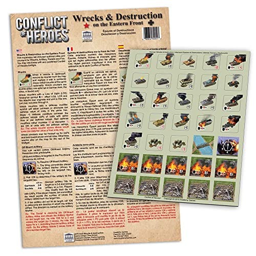 Wrecks and Destruction on the Eastern Front is an expansion counter set includes optional rules and counters for Wrecks, Artillery, Rubble and Fire. You can use these optional rules and counters with any published Conflict of Heroes firefight.