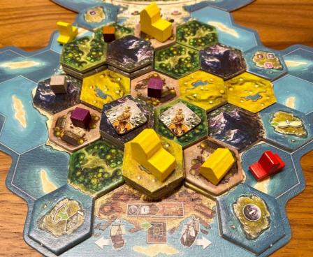 In the age of exploration the players arrive at a new home far away from their homeland. They try to settle the big island and each player tries to explore one part of it by placing landscape tiles. Landscape tiles grant resources and those are used to erect buildings with special abilities. Barriers on the island have to be removed in order to explore the island even further. Players build valuable statues and supply ships get them the supplies from the old world they need to be a successful settler on Cooper Island.