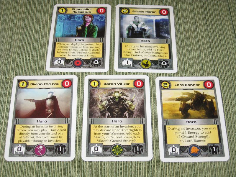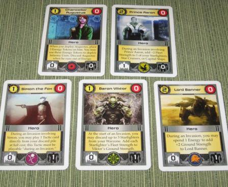Each player controls a barbarian Star Empire represented by many cards. Throughout the game, players will invade Worlds and draft new Units and Tactics into their Empires. Each card lists its Empire Points in the upper right corner. The player whose Empire contains the most Empire Points at the end of the game is the winner!
