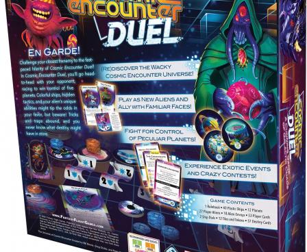 Cosmic Encounter Duel is a competitive standalone two-player game in the Cosmic Encounter universe in which you and your closest frenemy race to be the first to control five planets. Each of twenty-seven alien species comes equipped with its own unique abilities that play with the game mechanisms in some way, offering you an edge in the fight, e.g., the Cheater, who can reserve an additional tactic that they can put toward any fight in the game — as long as their opponent doesn't call out how they're trying to "cheat". How your game of Cosmic Encounter Duel plays out will inevitably be affected by which powers each dueling species has and how they play off of one another.