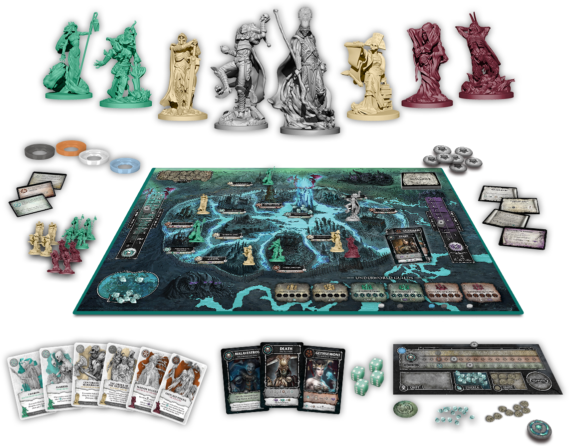 Everyone is already dead in the Underworld. It's time to join the factions of Bone, Flesh and Spirit as they work to achieve the goal of the Underworld: to gather enough forces to take on the celestials of Heaven and Hell to end their ceaseless war. If the players work diplomatically in Court of the Dead: Mourners Call to maintain a balance, they can ensure the Underworld survives long enough for them to also complete their collective and hidden individual objectives. The player who best contributes to these goals will earn Death's favor and a place among the elite of the Underworld.