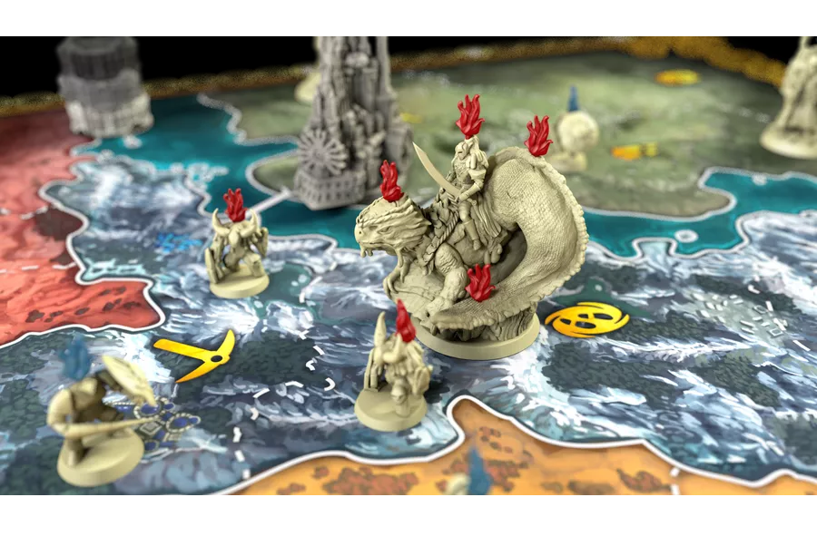 During their turn, players create new living candles and compose their layered miniatures, place tealights on the map, melt the deployed candles and activate their abilities, move, and upgrade the castle of the house. At the end of each era is a combat phase in which the conflicts and the majorities are resolved and players earn points. The goal of the game is to earn more points than the others and became the new king of Candelabria.