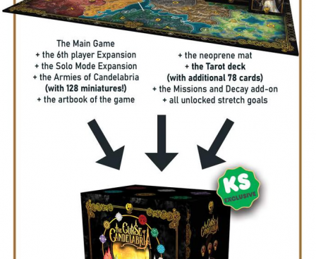 Core Pledge + the 6th Player Expansion + the Solo Mode Expansion + the Armies of Candelabria (128 miniatures!) + the Artbook + the Neoprene mat + all unlocked stretch goals.