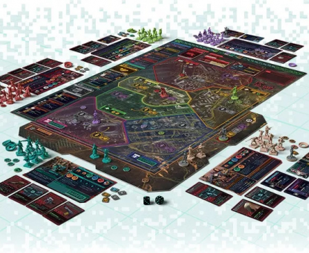 The Badlands district board is a 4-fold game board that is attached to the bottom right corner of Night City, mirroring the geography of the Cyberpunk 2077 in-game location.