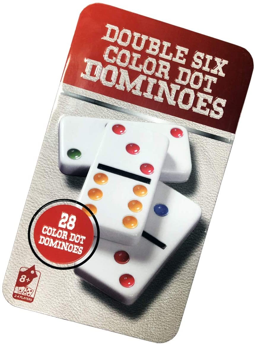 - This double-six domino set includes 28 tiles in a tin box.for 2-4 players to play together.