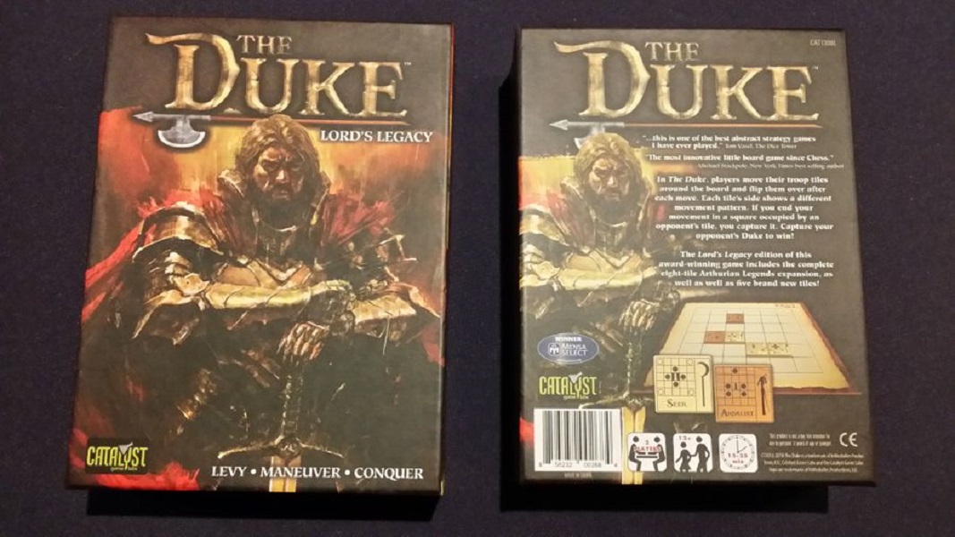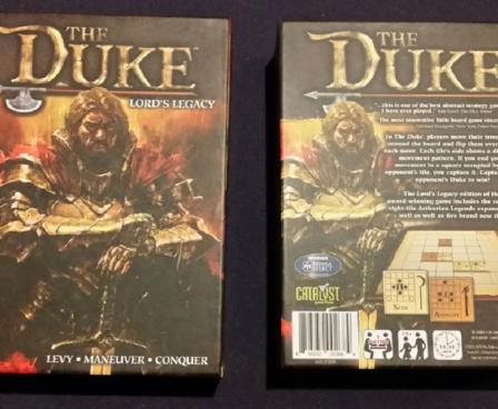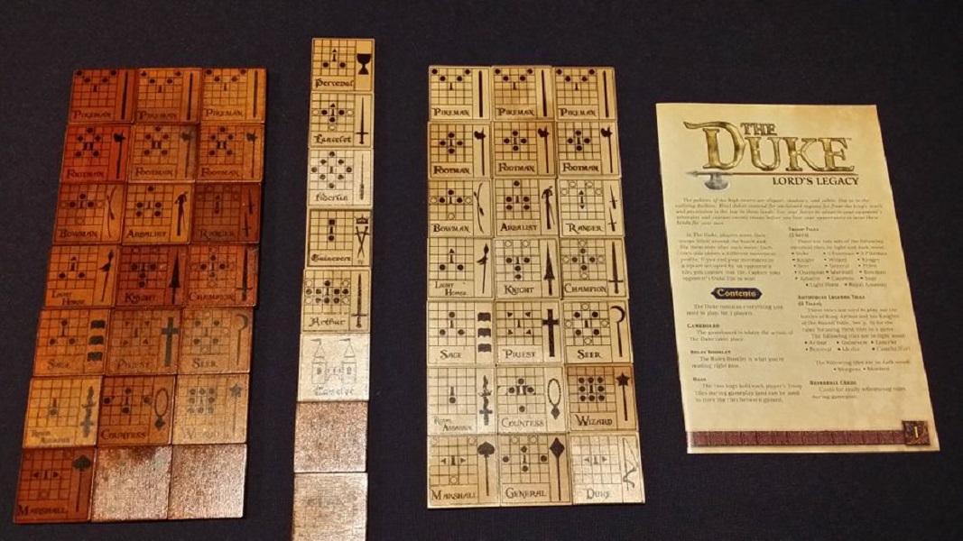 The Duke: Lord's Legacy is a new edition of the game that changes none of the game rules, but instead features upgraded packaging, a re-written rulebook, the complete eight-tile Arthurian Legends expansion, and five new tiles!