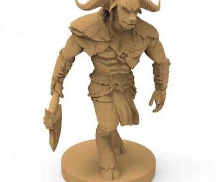 The Minotaur Miniature is a new mercenary class for Dwellings of Eldervale that comes in its own tuckbox - separate from any version of Dwellings of Eldervale. Included in the tuck box is the 50mm Minotaur miniature, standee, and corresponding game card.