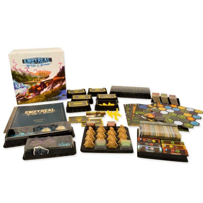 Empyreal: Spells & Steam plays 2–6 Players and is quick to set-up and play, and easy to store. At just 20 minutes per player, the game can be described as an "express" train game, but the huge variety of options and powers mean that each game will reveal new strategies, in classic Level 99 style. It's also surprisingly confrontational and cutthroat, as the genre goes.