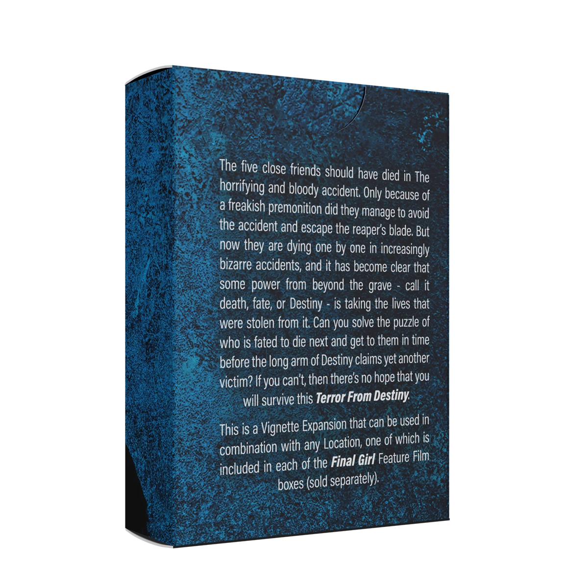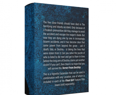 But now they are dying one by one in increasingly bizarre accidents, and it has become clear that some power from beyond the grave – call it death, fate, or Destiny – is taking the lives that were stolen from it. Can you solve the puzzle of who is fated to die next and get to them in time before the long arm of Destiny claims yet another victim. If you can’t, then there’s no hope that you will survive this Terror from Destiny.