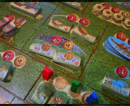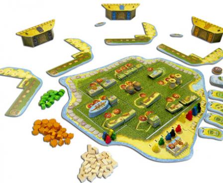 In Hawaii, players must make use of their limited resources to score points by growing their villages and exploring the surrounding islands. Your chieftains move around the board to purchase new tiles for their villages, hopefully grabbing the best deals before their opponents. Three different currencies are used to pay for these trips, so make sure you don't run out of any of them too quickly. Players are also rewarded for providing for their people (measured essentially by how much they bought on a given turn), but your meager income shrinks as the game goes on. Players will have to balance a number of ways to score points to secure their victory.