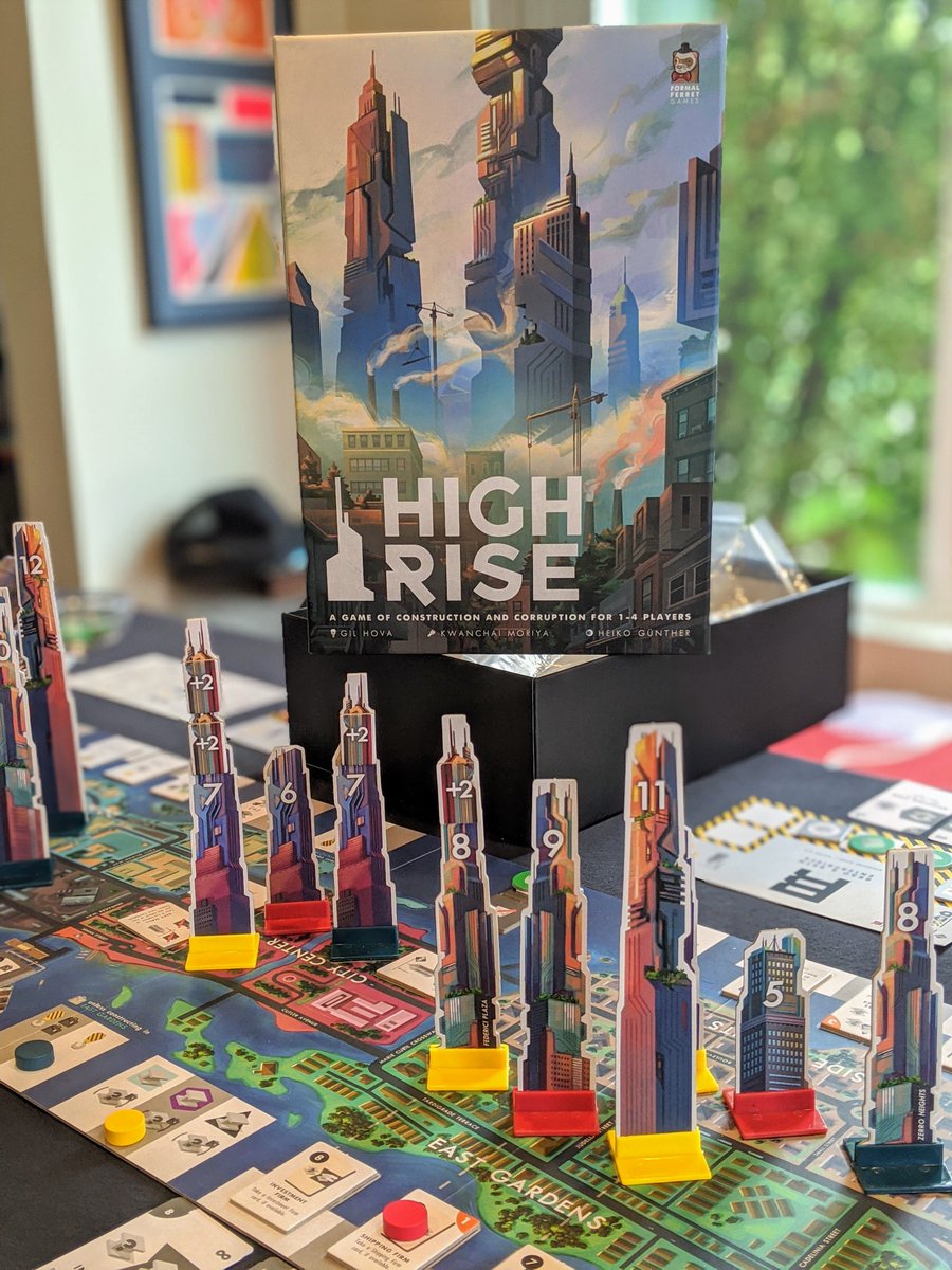 High Rise is a strategic city-building game with a bit of corruption. You can get bonuses on your actions by gaining Corruption, but the game will periodically penalize the most corrupt players, and everyone loses VP for Corruption at the end of the game.