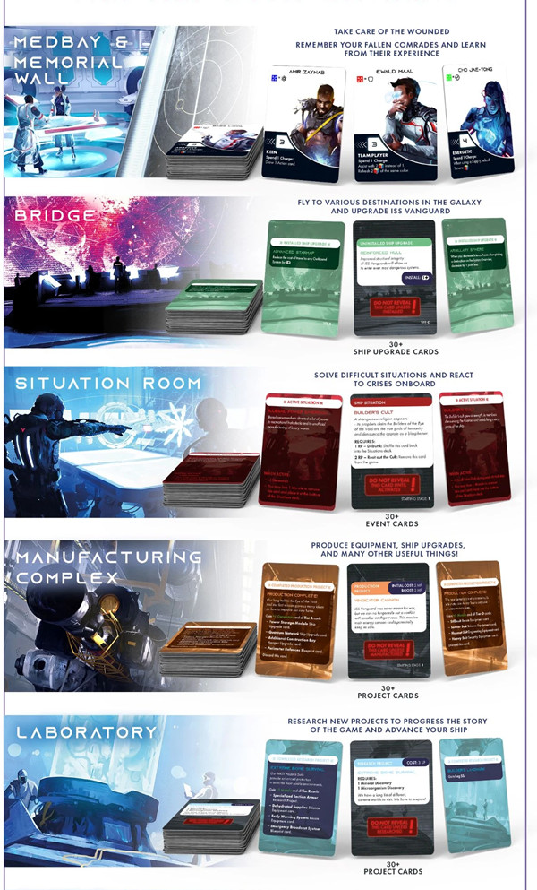 ISS Vanguard is a 1-4 player co-operative, campaign Board Game. It will bring players right into epic Sci-Fi adventure, as they will play as 4 sections (security, recon, science, engineering) onboard the first human ship with the possibility to reach outer space.