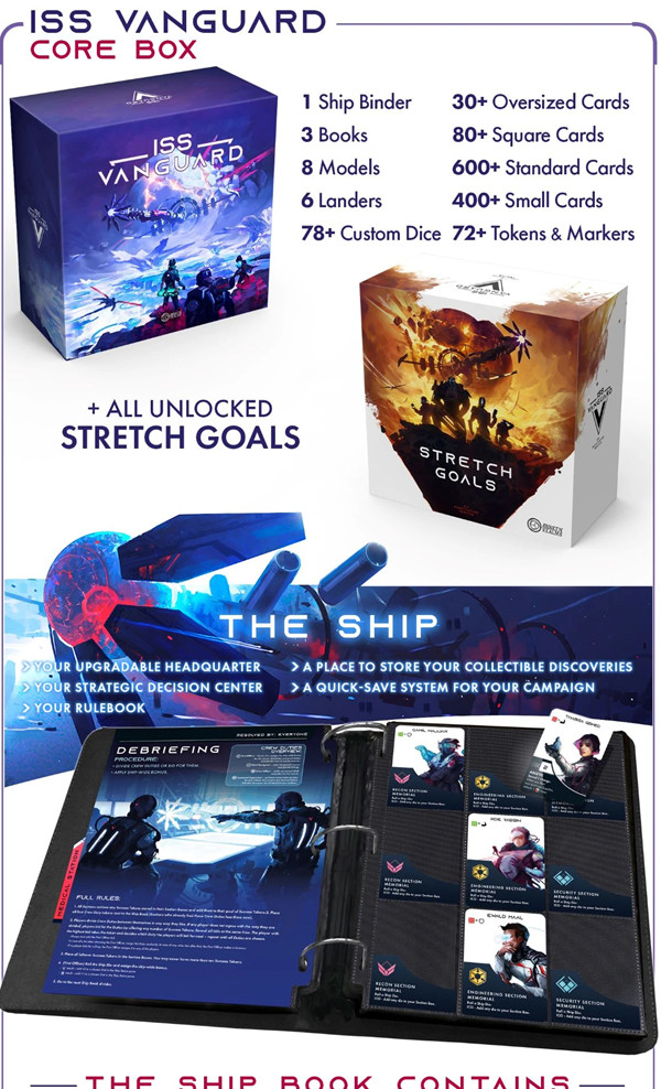 This pledge includes ISS Vanguard Core Box, including all Stretch Goals and expansions from this campaign!