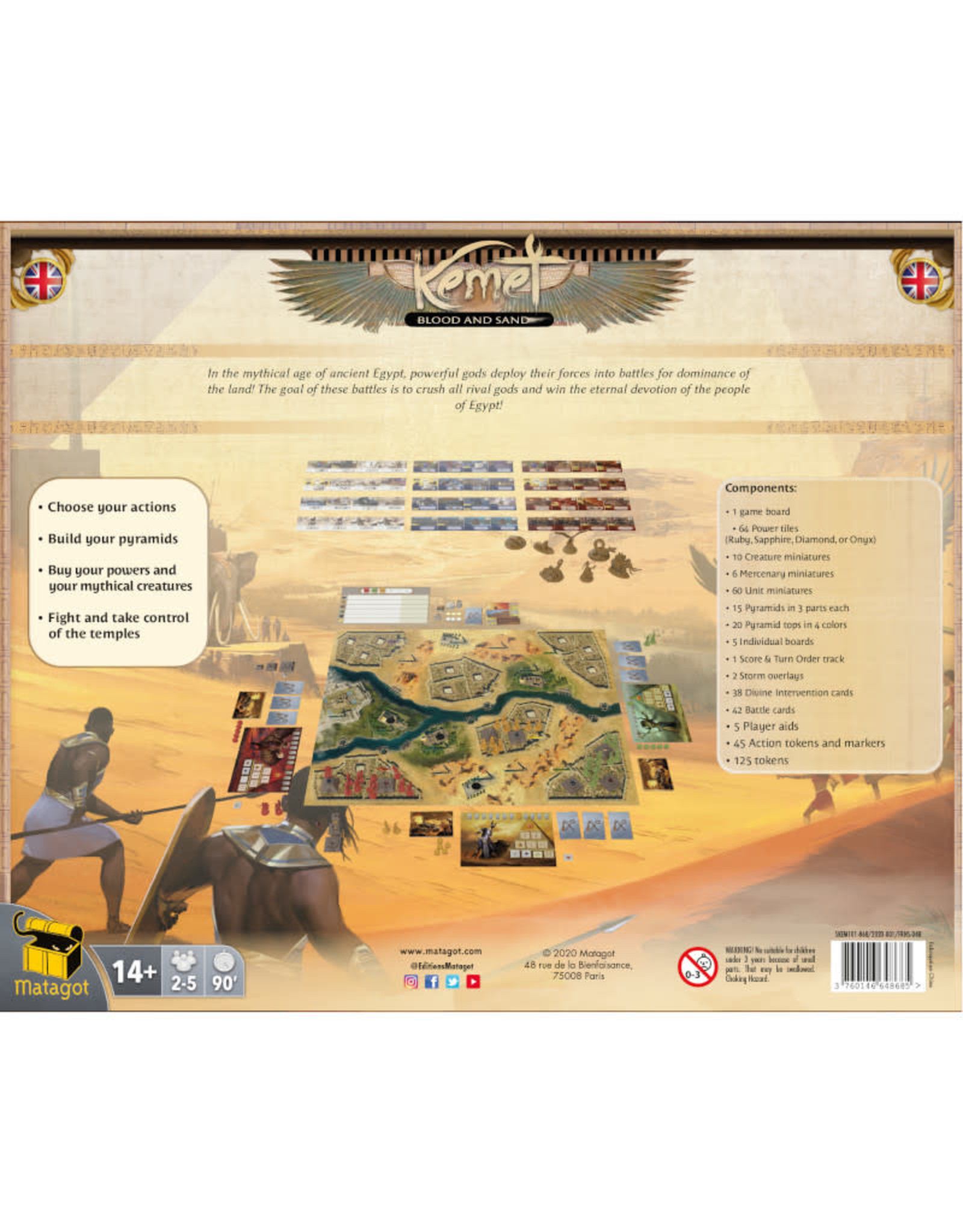 With Kemet: Blood and Sand, immerse yourself in a more realistic Ancient Egypt. Here, Gods are powerful, masters of both the desert and the Nile delta. They challenge each other in violent battles and show no mercy. Get ready to become an Egyptian God, open the gates of your city, and let your troops sing the song of war to please you and claim your dominance as master of Ancient Egypt.