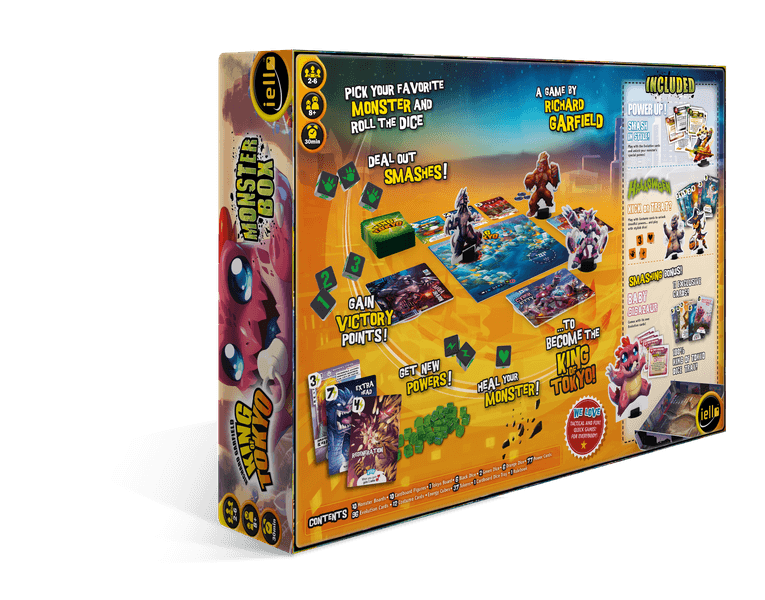The fight for dominating the city of Tokyo has never been so competitive! This explosive Monster Box is filled with fun and adrenaline! Get King of Tokyo and all of its indispensable Power Up! and Halloween expansions for hours and hours of smashes. Use your Monster's Evolution Cards to get even more special properties, and dress them up for even more fun! The Monster Box also comes with a brand new version of Gigazaur, exclusive cards and a new dice tray, some much needed bonuses to destroy Tokyo in style!