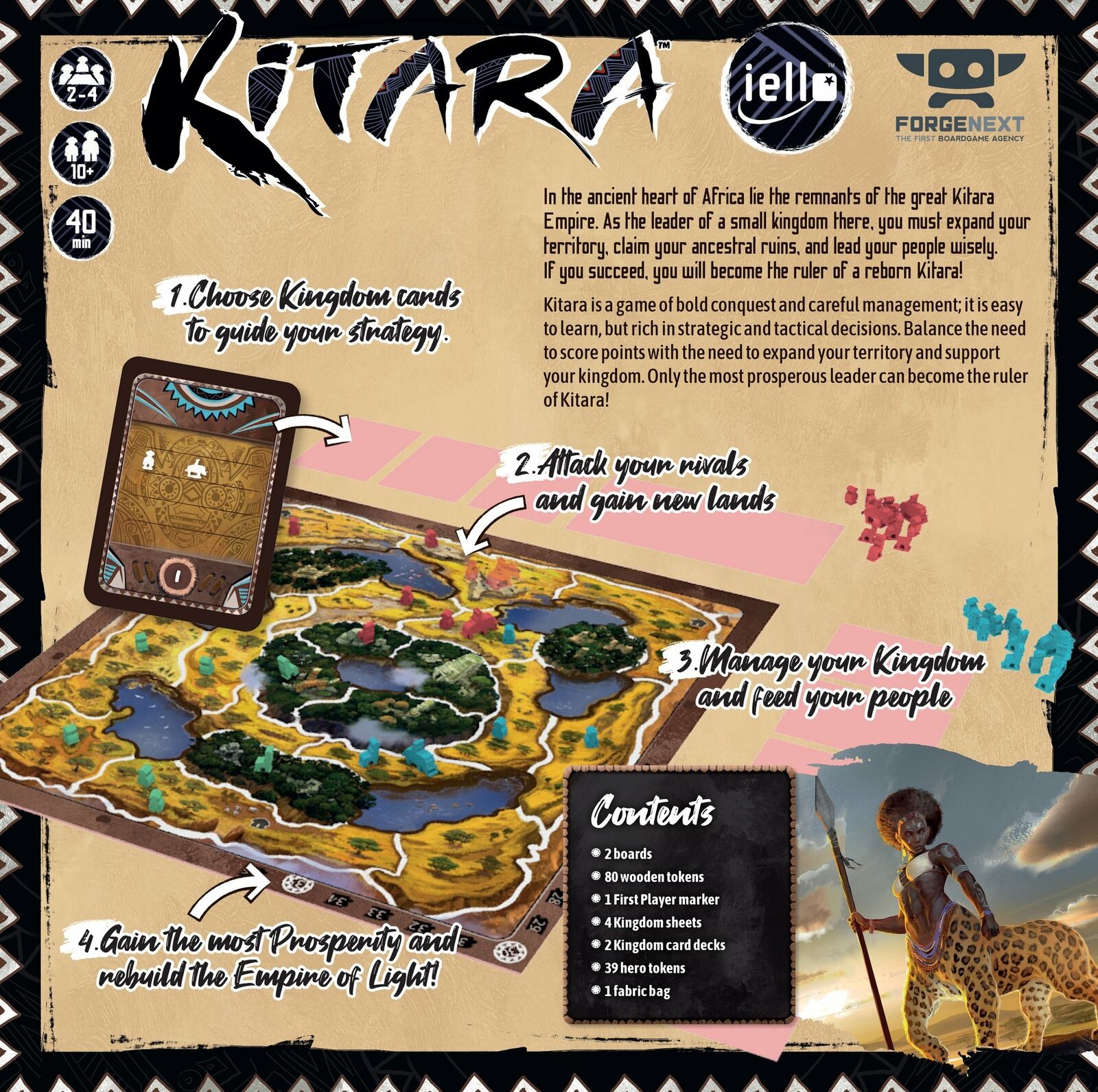 Kitara is a strategy game that mixes conquest, movement, and battle. Manage your cards to plan your actions: the more territories you control, the more options you get! Strengthen your army of hunters, cheetah-centaurs, and heroes! Protect livestock and crops, move your troops, and go to war. Kitara is a dynamic strategy game, full of tension and suspense.