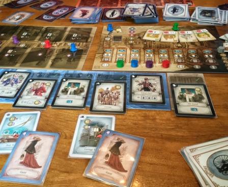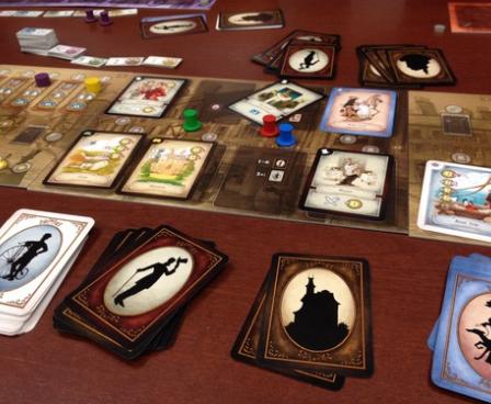 Each player then chooses a plan for the round, with each plan indicating the number of cards the player draws (drawn immediately from the four regular decks in any combination), and his spot in the playing order that round. In the playing order for that round, players then take turns choosing an action with their errand boy(s), with those actions being: