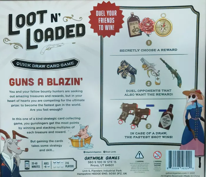 In this one of a kind strategic card collecting game, you gunslingers get the most points by winning and stacking multiples of each treasure and reward.