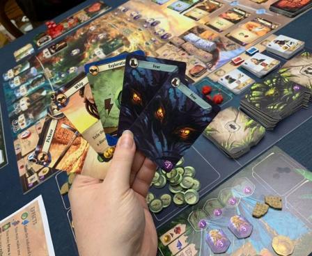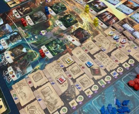 Decks are small, and randomness in the game is heavily mitigated by the wealth of tactical decisions offered on the game board. With a variety of worker actions, artifacts, and equipment cards, the set-up for each game will be unique, encouraging players to explore new strategies to meet the challenge.