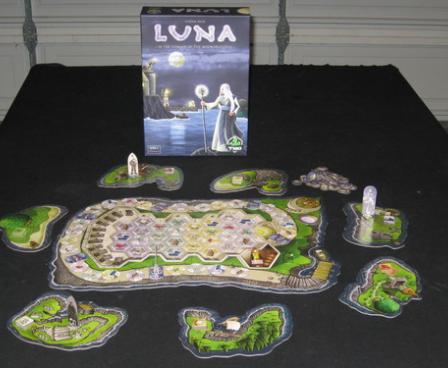 LUNA: In the Domain of the Moon Priestess is a challenging tactical game with strategic and interactive elements that takes about 20-25 minutes per player. The different placement of the islands and novices at the beginning of the game creates a different feeling each time you play and opens up new strategies.
