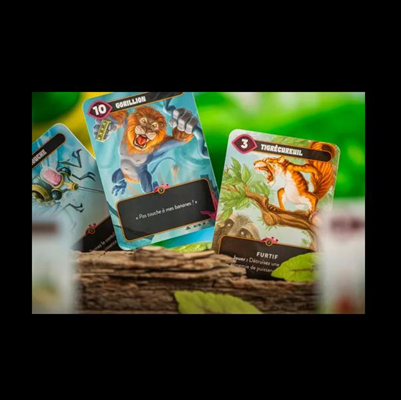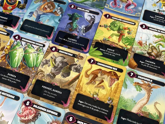 Cards in Mindbug represent weird creatures that all come with unique and powerful abilities such as a Compost Dragon, a Snail Hydra, or a Kangasaurus Rex. Each player starts the game with ten creature cards (five in hand and five in a draw pile) and tries to use them to reduce the opponent's life total to zero. In addition, every player receives two Mindbug cards that can be used to mind control an opposing creature when it is played. This innovative Mindbug mechanism is the core of the game and leads to a unique decision-making process that makes Mindbug feel utterly different from any other card game.
