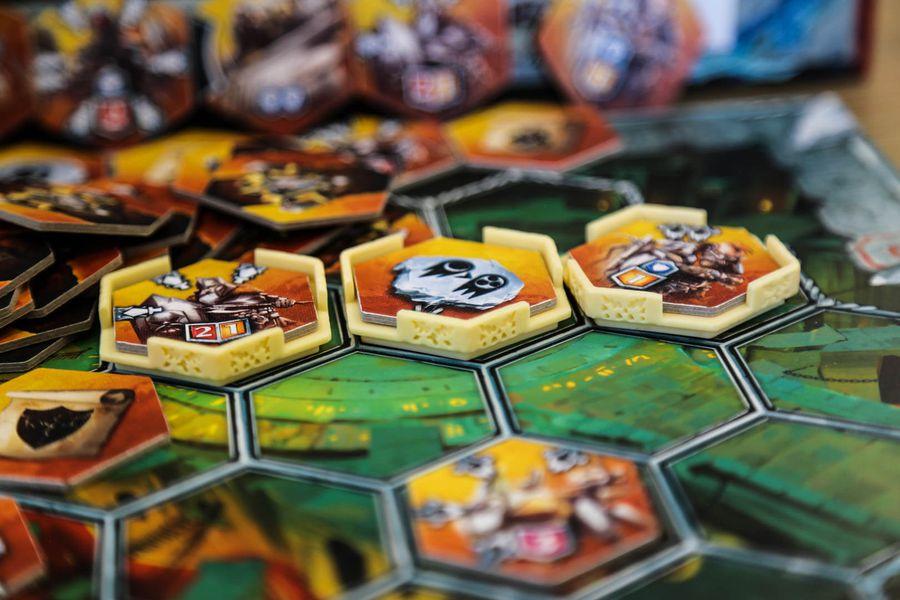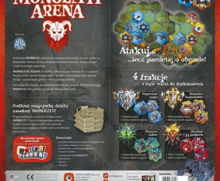 Monolith Arena is a fantasy battleground board game built around the base engine of Neuroshima Hex, which is also from designer Michał Oracz. The game includes four factions, with unique abilities and units! Each player has a monolith that serves as their headquarters, and each player seeds their monolith with three tokens that provide special abilities. When an opponent damages your monolith, you remove the top layer to expose the first token, gaining its special ability, so being attacked can actually make you stronger — albeit while still moving you toward defeat...