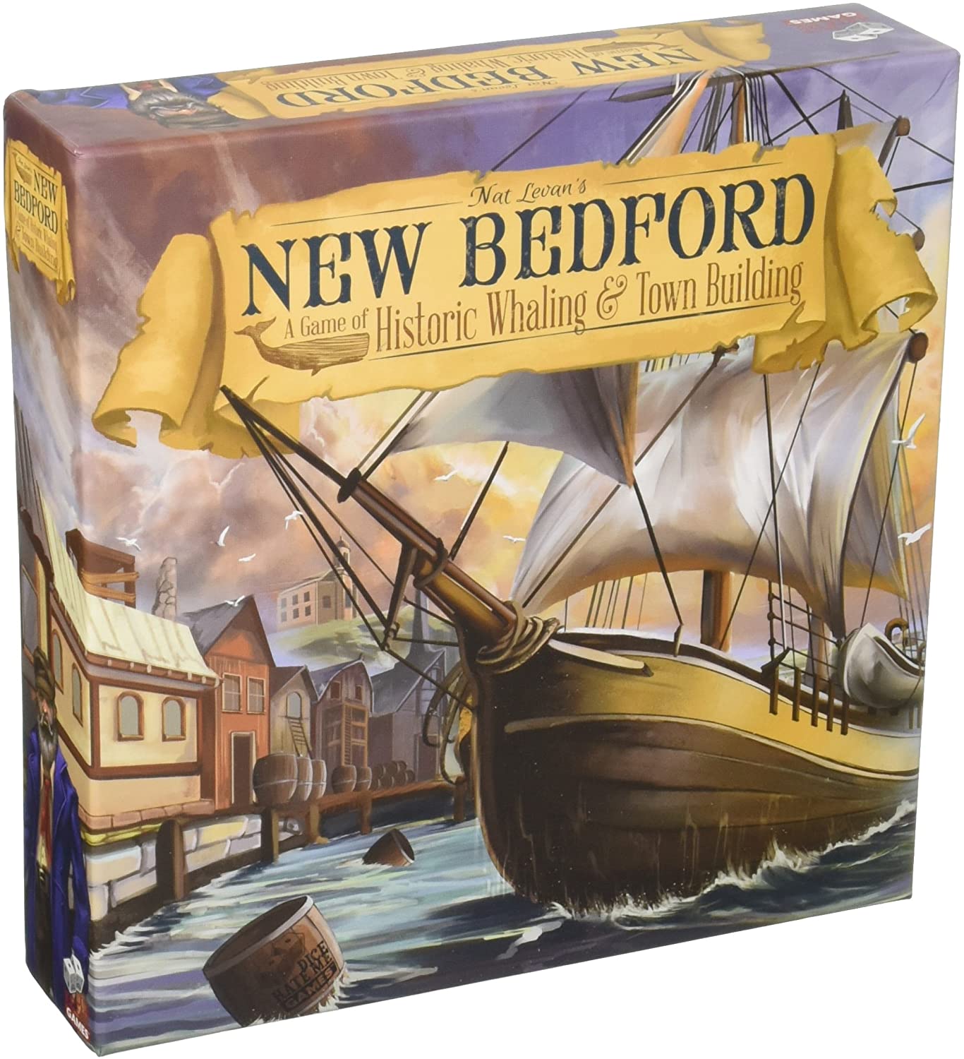 Set in the mid-1800s, the golden age of whaling, New Bedford gives you the chance to build the Massachusetts town of the same name into a thriving whaling community. Gather resources to add buildings with new actions and launch ships to go whaling. Go out longest for the best choice, but wait too long and the whales become harder to catch. And don't forget to pay your crew when ships return! Carefully balance time management and timing to earn the most points in this medium-weight worker placement and resource management game.